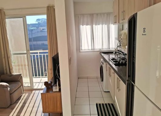 Apartamento com 49 m² de área útil, 02 quartos com planejados, 01 banheiro social, sala dois ambientes, sacada vista livre com sol da manhã, cozinha com planejados e cooktop, área de serviço, 01 vaga de garagem.